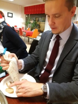 Vähän samaa, mutta eri: Viime viikolla minut oli kutsuttu Espoon Kirjailijoiden kirjallisuusillalliselle puhumaan pöytätavoista. Ensin kuitenkin laitoimme yhdessä ruokaa, tässä tapauksessa makeita ja suolapaloja, kuten savulohitäytteisiä ruissipsejä:
