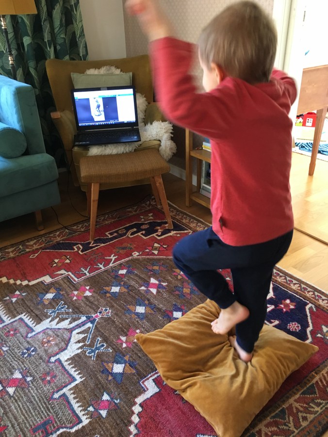Pojalle on ainakin minusta nyt seuraa. Painimme, pelaamme Castle Panicia, hän kiipeilee selässäni tehdessäni päivän etunojapunnerruksia. Jos hän muistaa koronakeväästä jotain, varmaan nämä iltapäivät isin kanssa. Hän on tyytyväinen, iloinen näinä päivinä. Minulla on töitä siis, tärkeääkin vielä.
