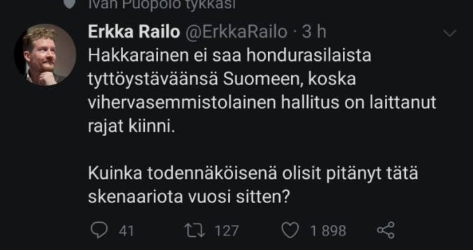 Kaupassa robottimainen miesääni kuuluttaa: ”Hyvä asiakkaamme. Ennakoimissyistä pidämme sinuun kahden metrin turvavälin, pidäthän sinäkin.” Tulee olo kuin scifileffojen kohtauksissa, jossa kaiuttimista kuuluu käskyjä dystopian kansalaisille.