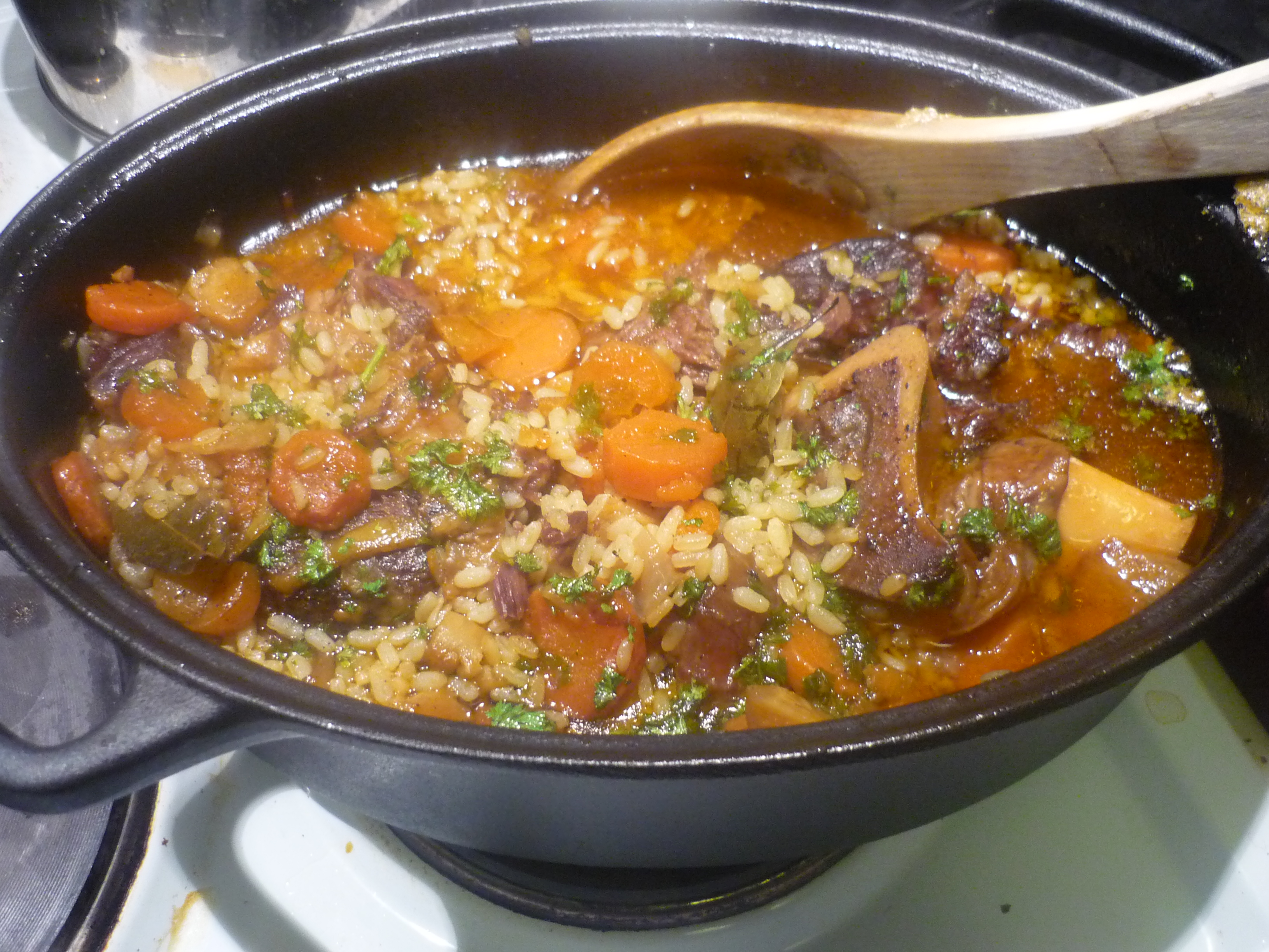Tein munuaisista risoton. Riisit on tässä paistettu ja keitetty valkoviini-kanaliemessä. Sitten sipulia, pekonia (Wotkins ainoa hyvä), mascarponea, persiljaa ja päälle raastetaan parmesaania tai gran padanoa. Laitan munuaiset pikku kuutioiksi ja lisään sekaan erehdyttävän saman näköisiä sieniä ja rusinoita. Tämä on oiva kikka saada lisää ravinteita kasvissyöjän ruokavalioon – hän ei varmasti edes tiedä mitä syö!